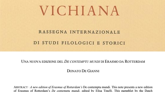 Vichiana fasc.I/ 2026 - recensione di D. De Gianni del De contemptu mundi CPE